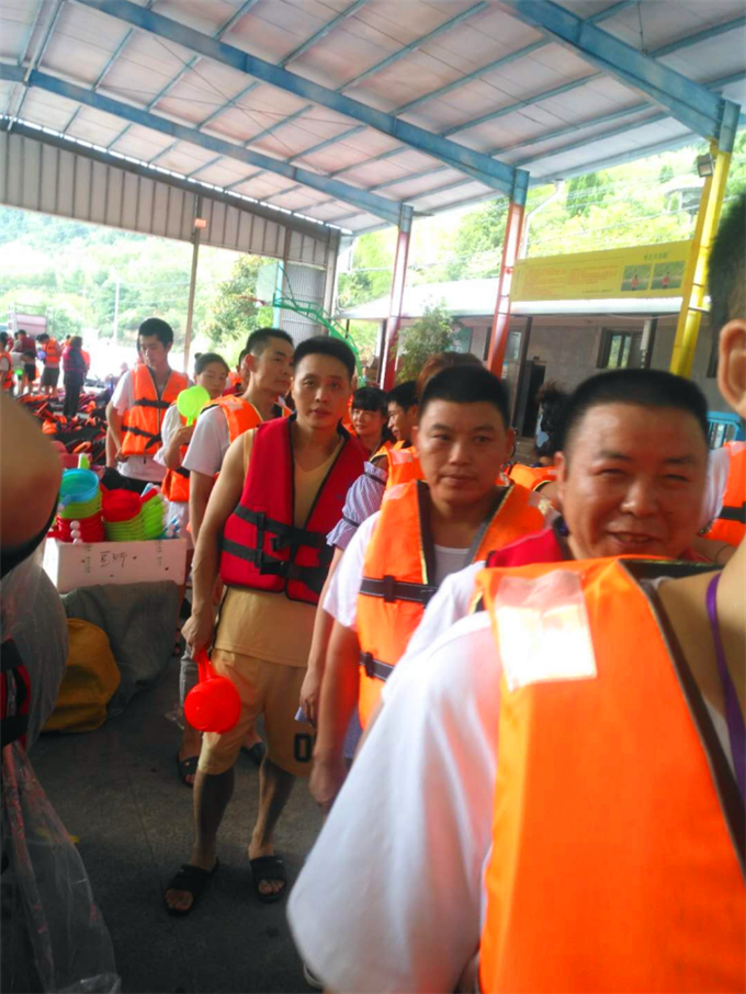 吃完中午飯后,乘著旅游大巴終于抵達(dá)期待已久的目的地龍井峽漂流,大家迫不及待地穿戴好救生衣帽,跳上皮筏艇,一艘艘皮筏艇,隨著激流飄蕩、回旋,整個(gè)過程充滿了驚、奇、險(xiǎn)的樂趣。皮筏艇漂到平處時(shí),同事們紛紛玩起了水仗,水仗的武器有水槍、水瓢等等。水槍適合長(zhǎng)距離噴射,當(dāng)敵我有一定距離時(shí),選用水槍,朝對(duì)方眼睛攻擊,定能將對(duì)方打得個(gè)措手不及;若敵我距離近,可選用水瓢,舀起水拼命往對(duì)方臉上頭上潑,然后乘勝漂走……一時(shí)局面陷入混戰(zhàn),水浪滔天,喧鬧的水聲笑聲不絕于耳,分不清敵我?;蛟S我們都擁有一顆未泯的童心,拋開煩惱壓力,放下所有的束縛,擁抱大自然,心中被快樂充滿,童性在這一刻釋放,此刻的我們仿佛一群調(diào)皮的孩童,恣意享受這短暫的快樂。